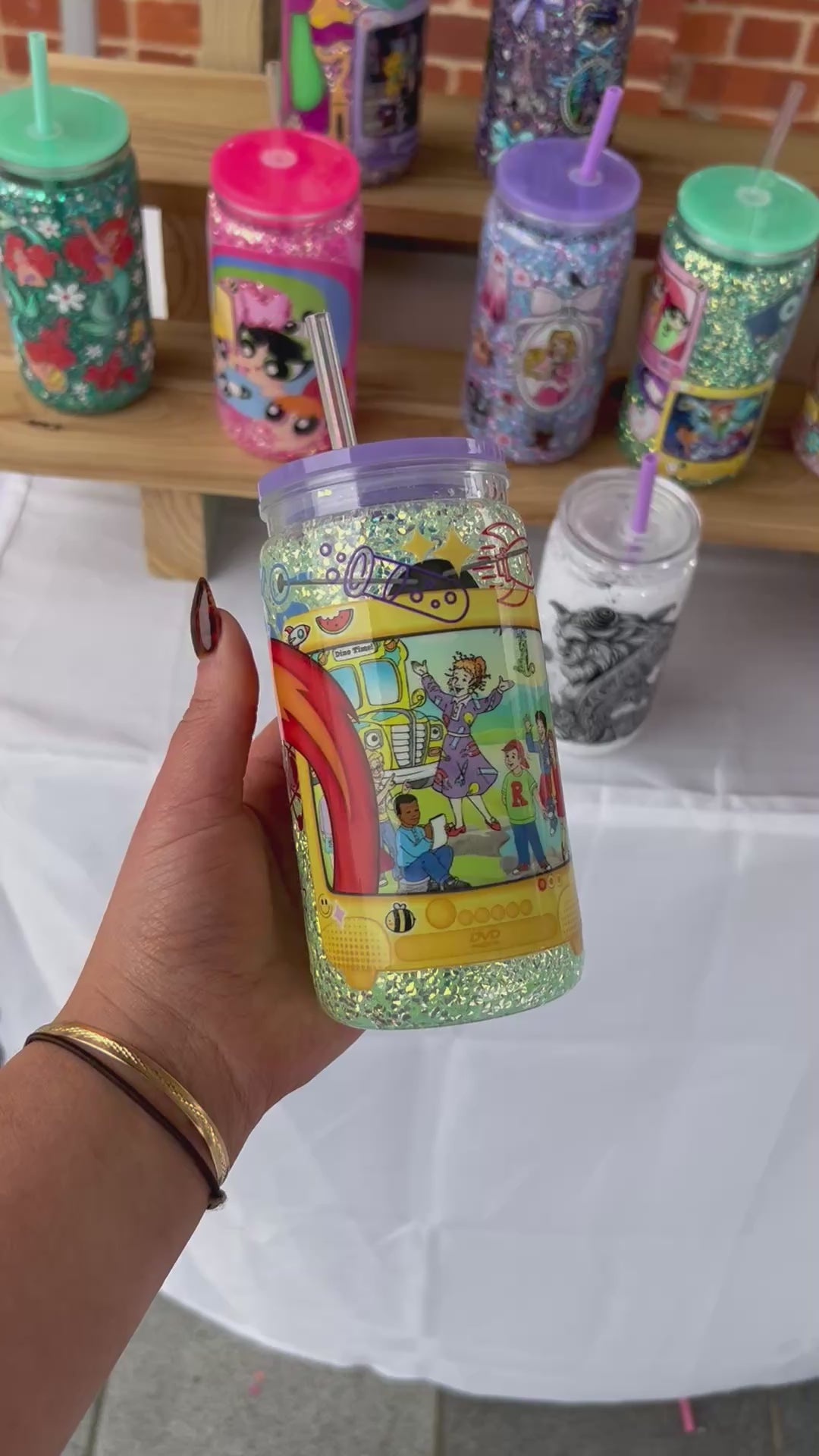 Magic School Bus Nostalgia Double Walled Acrylic Cup W/ lid & straw