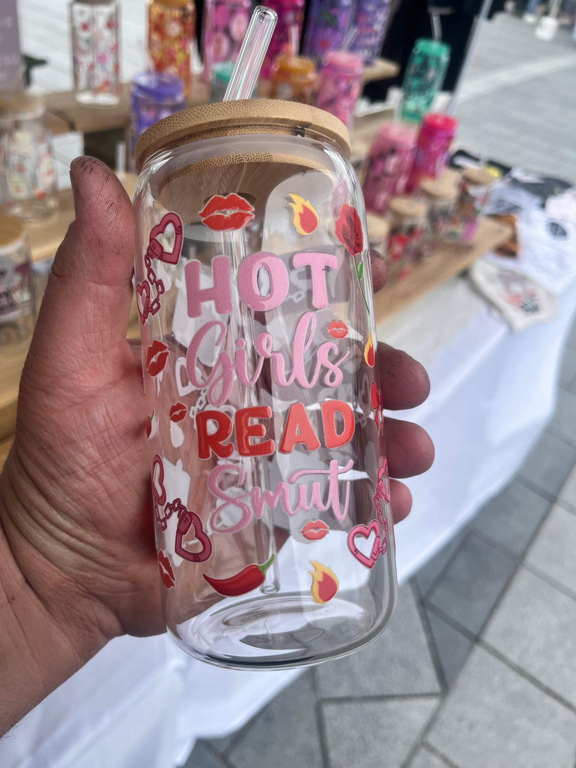 Hot Girls Read Smut Glass Cup W/bamboo lid & glass straw