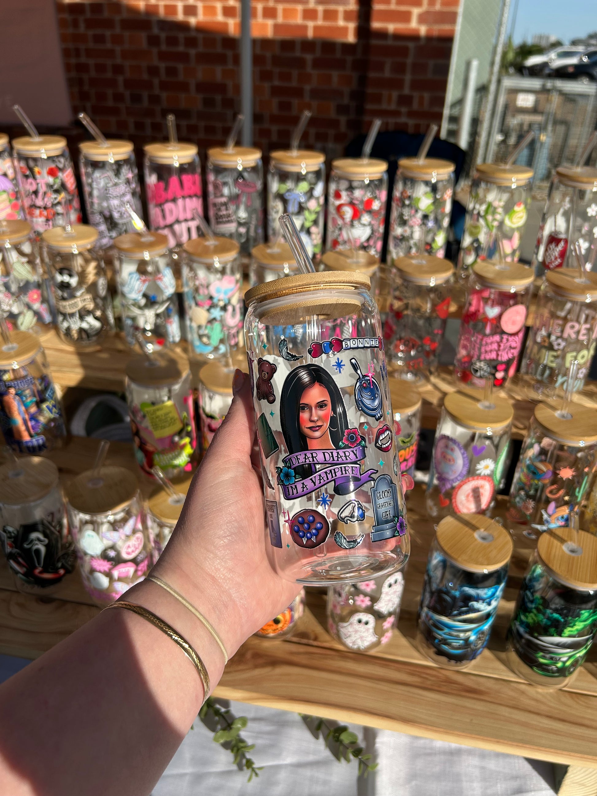Vampire Diary - 16oz Glass Cup w/Bamboo Lid & Glass Straw